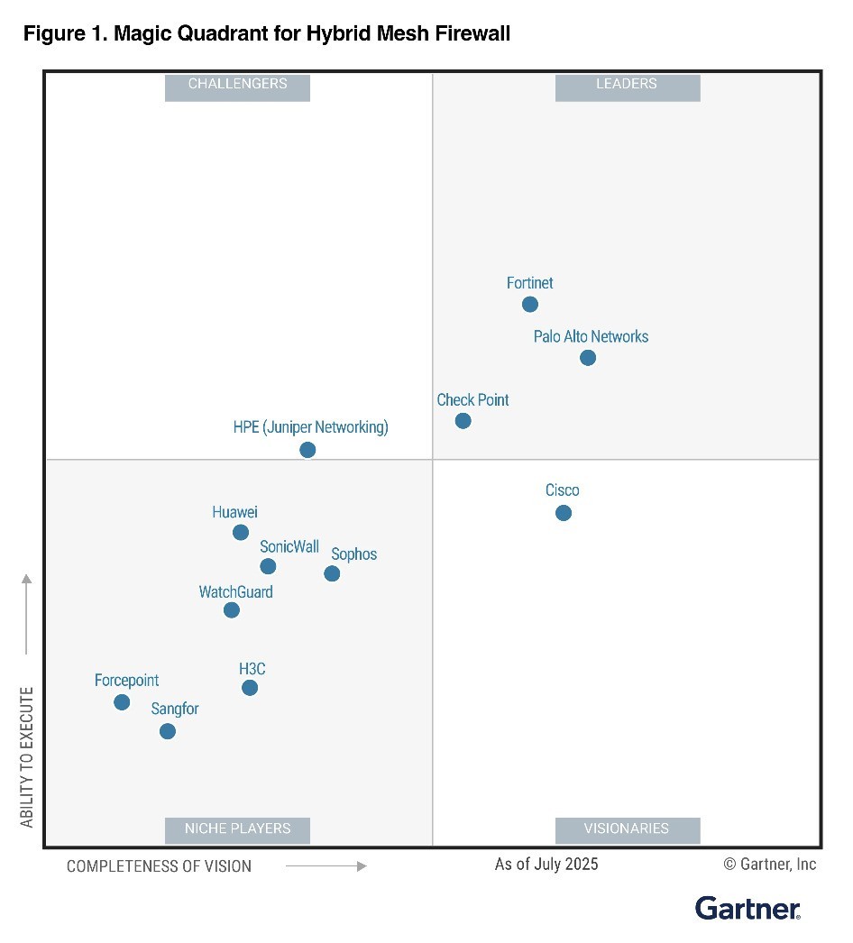 专注推动网络与安全融合的全球性综合网络安全解决方案供应商 Fortinet,近日凭借最高执行力斩获 2025 年 Gartner 混合式部署防火墙(HMF)魔力象限TM 报告领导者殊荣。作为首届Gartner混合式部署防火墙魔力象限的领导者,Fortinet已累计在13份Gartner魔力象限报告中获得认可,充分彰显其在网络安全领域的综合实力。